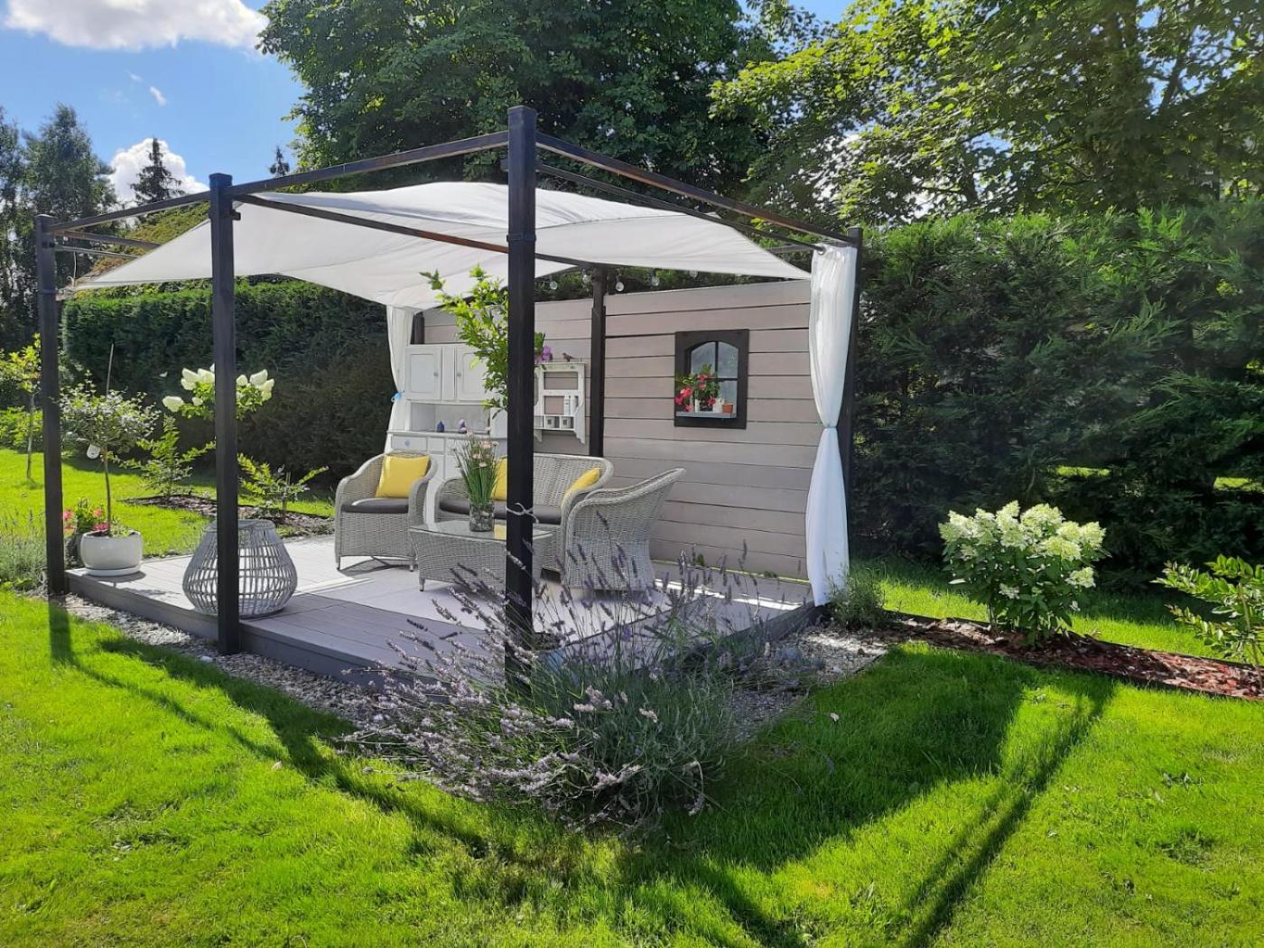 Dom z 3 sypialniami. This holiday homes special feature is the fireplace. Guests will find a stovetop, a refrigerator, a dishwasher and kitchenware in the well-equipped kitchen. The holiday home also offers a barbecue. The holiday home provides a private entrance, a tea and coffee maker, a terrace with garden views as well as a shared bathroom featuring a walk-in shower. The unit offers 6 beds. Dom wakacyjny - 6 osobowy. Powierzchnia pokoju ok.: 93 mkw.