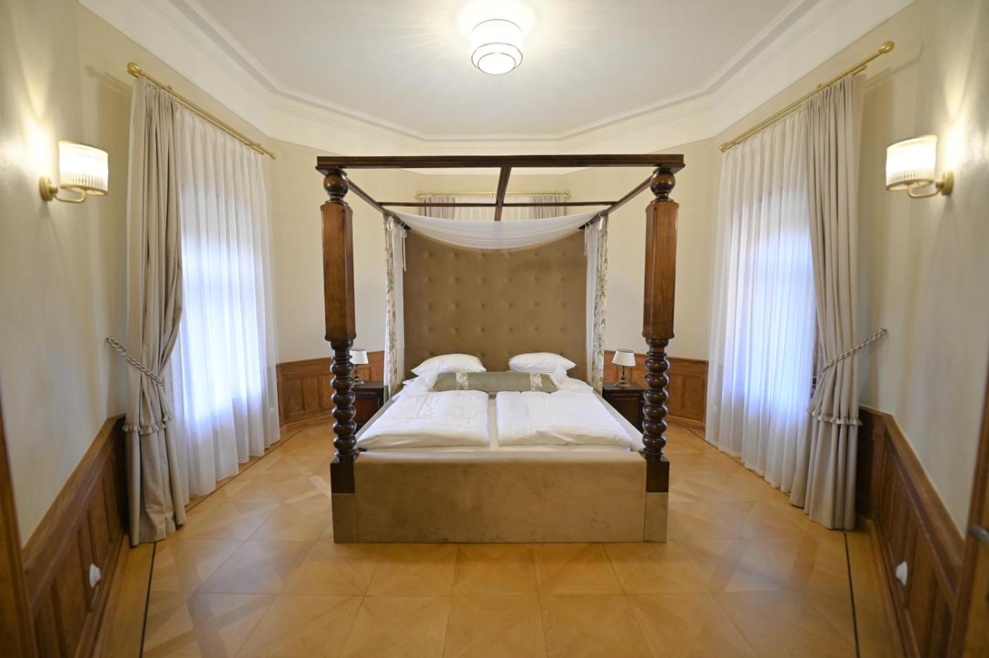 Apartament. Ten przestronny apartament mieści salon, oddzielną sypialnię oraz łazienkę z wanną i prysznicem. W apartamencie znajduje się część wypoczynkowa z telewizorem z płaskim ekranem, drewnianą podłogę, zestaw do parzenia kawy i herbaty oraz szafa. Z okien roztacza się widok na ogród. Do dyspozycji gości są 2 łóżka. Apartament - 4 osobowy. Powierzchnia pokoju ok.: 100 mkw. ;