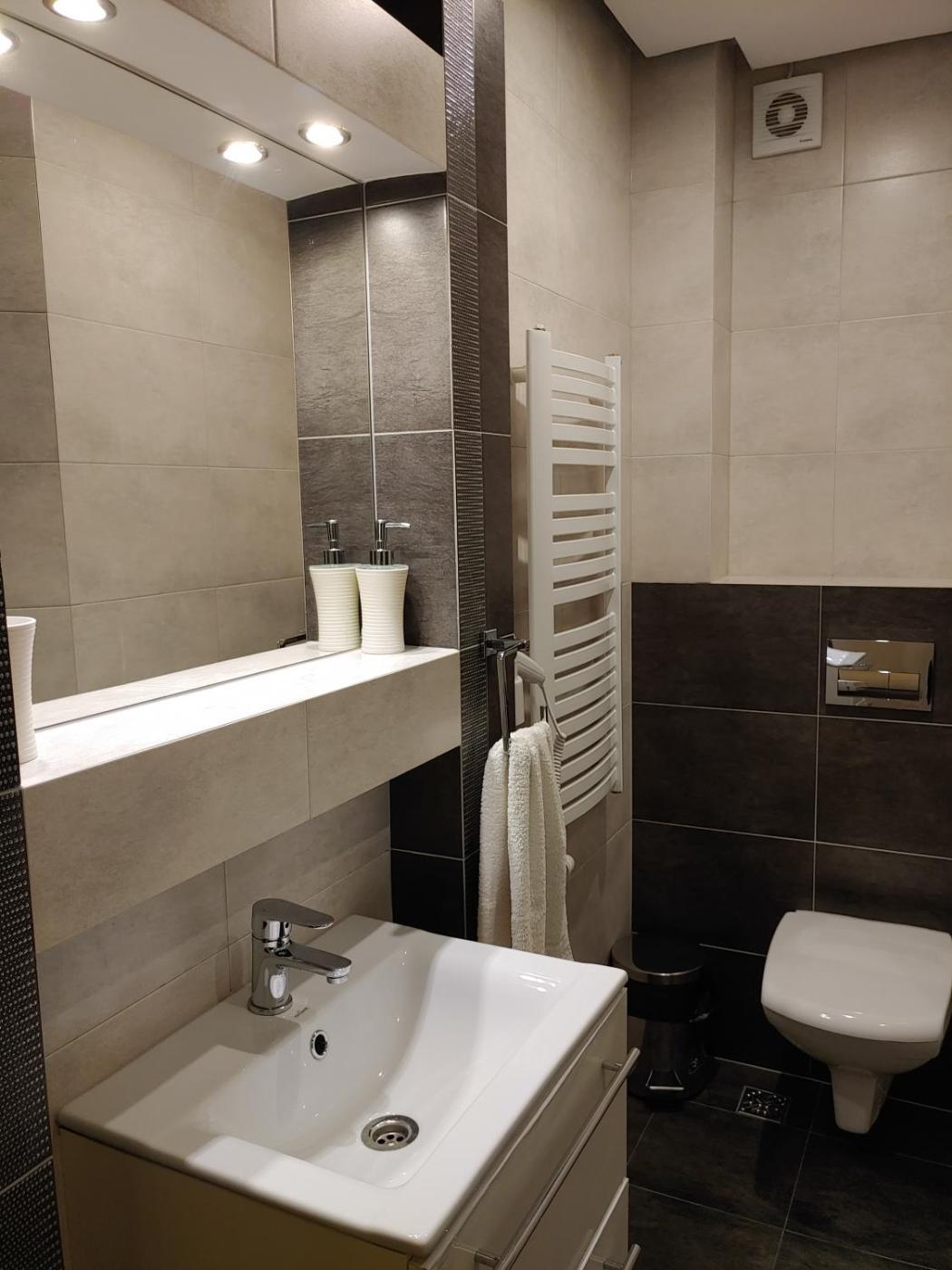 Pokój Dwuosobowy z dodatkowym łóżkiem. The double room offers a tea and coffee maker, a wardrobe, as well as a private bathroom featuring a shower and a hairdryer. The fully equipped kitchenette features a stovetop, a refrigerator, kitchenware and a microwave. This double room has parquet floors, heating, a flat-screen TV and a balcony. The unit offers 2 beds. Pokój Dwuosobowy - 3 osobowy. Powierzchnia pokoju ok.: 25 mkw. ;
